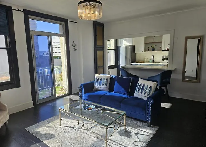 Luxe Suite Convention Center Partial Ocean View With Free Parking offre à ses clients une climatisation, ainsi que des commodités modernes comme une TV à écran plat avec des chaînes satellite pour un séjour plus agréable. L'appartement dispose également de 1 salle de bain. Un sèche-cheveux et des serviettes sont accessibles.